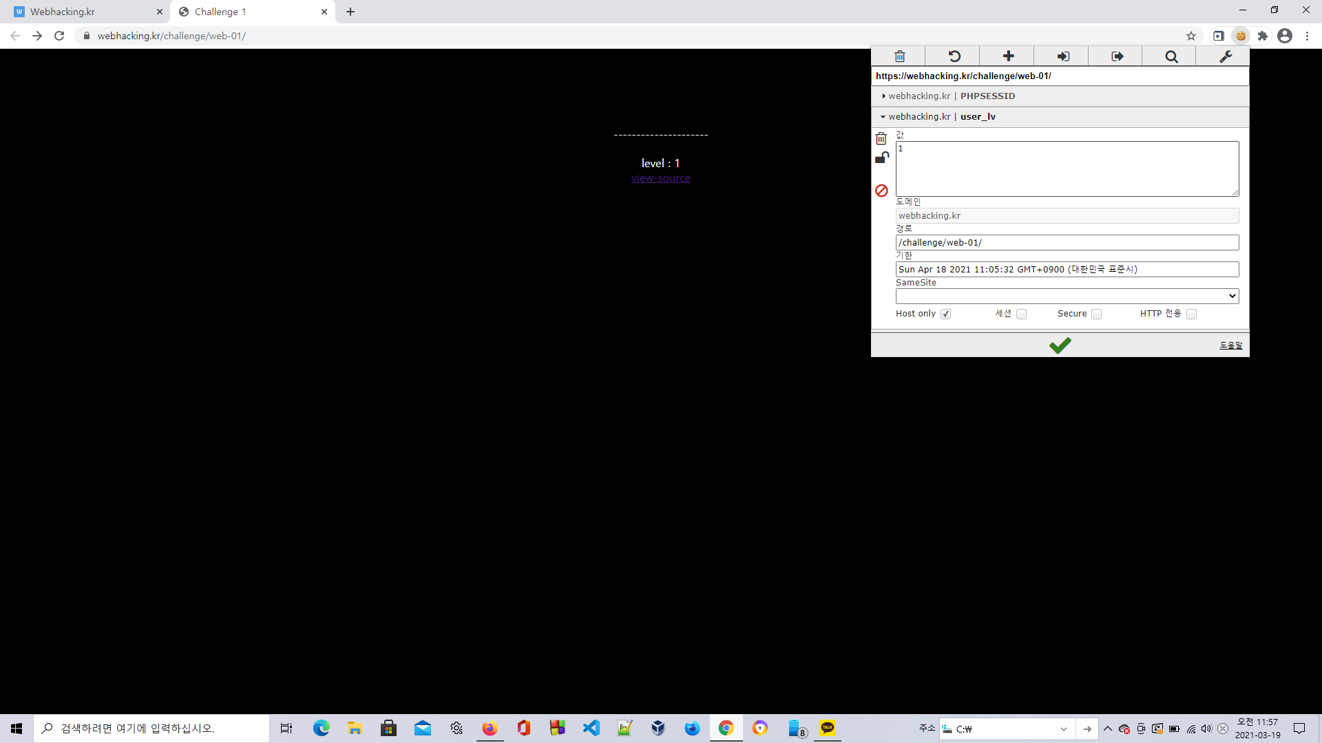 [웹 해킹] webhacking.kr 1번 문제웹 해킹 2021. 3. 19. 12:45